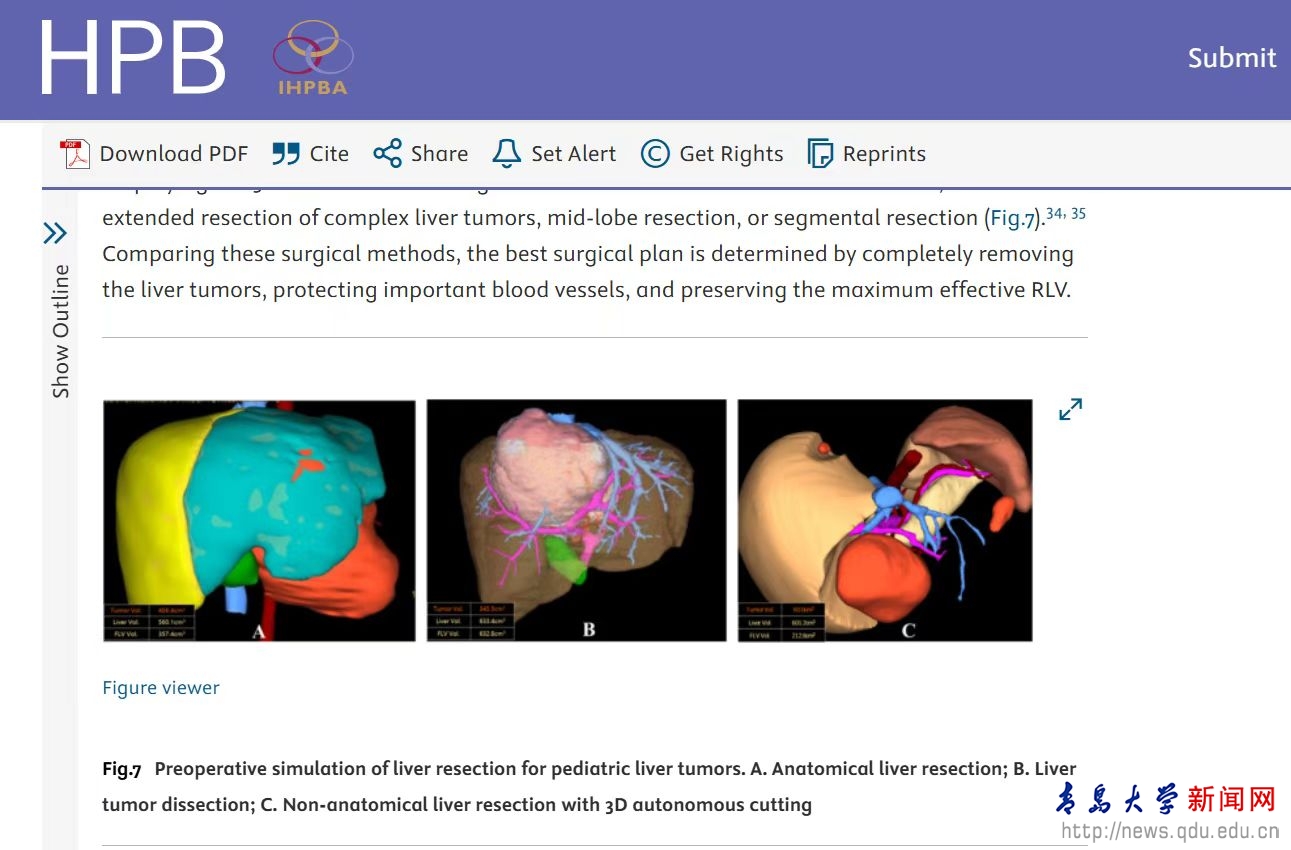 新闻网讯 近日,山东省数字医学与计算机辅助手术重点实验室主任、bevictor伟德官网数字医学与计算机辅助手术研究院院长、bevictor伟德官网附属医院小儿外科教授董蒨,作为第一作者兼通讯作者,联合中国、美国、日本、德国、英国、韩国、澳大利亚、加拿大等8个国家、34家医疗机构的36位顶级医学专家共同撰写的《三维可视化技术在小儿肝脏肿瘤精准外科治疗中的临床应用国际专家共识》,在国际肝胆胰领域顶级期刊《HPB》正式发表,标志着小儿肝脏肿瘤精准外科治疗迈入了新阶段,为全球小儿肝脏肿瘤诊疗提供了权威指导。