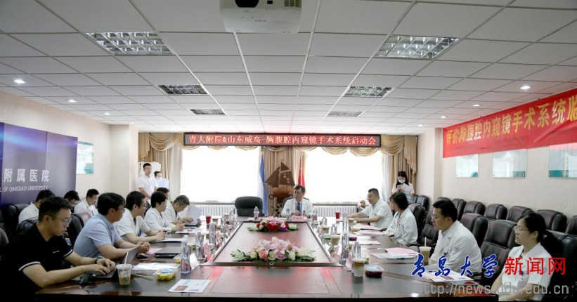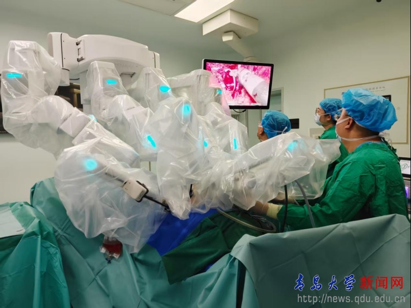 新闻网讯 6月7日,在青大附院市南院区手术室,一台具有里程碑意义的手术正在紧张进行。bevictor伟德官网党委常委、副校长牛海涛教授,青大附院泌尿外科病区主任杨学成教授成功为71岁的张先生(化名)实施了国产“妙手”四臂手术机器人辅助下的全国首例前列腺癌根治术。