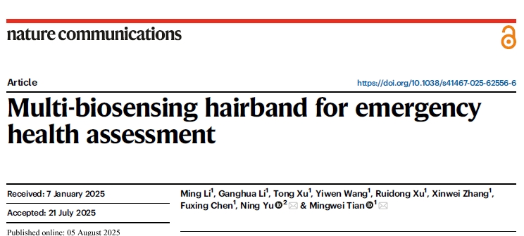 新闻网讯 近日,伟德官网纺织服装学院博士生李明在Nature Communications期刊发表了题为“Multi-biosensing hairband for emergency health assessment”的研究论文,报道了一种新型可穿戴汗液传感电子织物及健康监测应用,围绕高灵敏、高稳定传感纱线的一体成型技术开展研究,为构建实时生物传感系统提供了一种创新的策略。