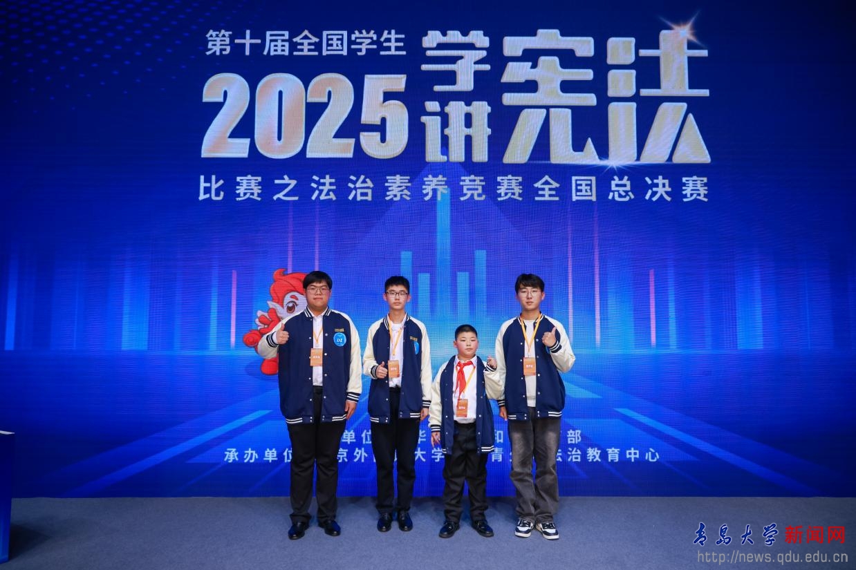 新闻网讯 12月3日,由教育部主办的第十届全国学生“学宪法 讲宪法”全国总决赛在北京外国语大学落下帷幕。总决赛设演讲比赛和法治素养竞赛两大项目,涵盖小学、初中、高中及高校四个组别,吸引了全国31个省(自治区、直辖市)、新疆生产建设兵团、香港、澳门特别行政区的代表队同台竞技。其中,法治素养竞赛以省级代表队为单位展开团队角逐,伟德官网法学院2023级本科生苗立长在第十届全省学生“学宪法 讲宪法”素养竞赛中获得特等奖,入选山东省代表队,作为山东省高校组代表出征全国总决赛。经过多轮激烈角逐,山东省代表队最终荣获第十届全国学生"学宪法讲宪法"法治素养竞赛团队二等奖。苗立长将代表学校参加第十届学生“学宪法 讲宪法”活动成果展示暨省级决赛颁奖仪式。