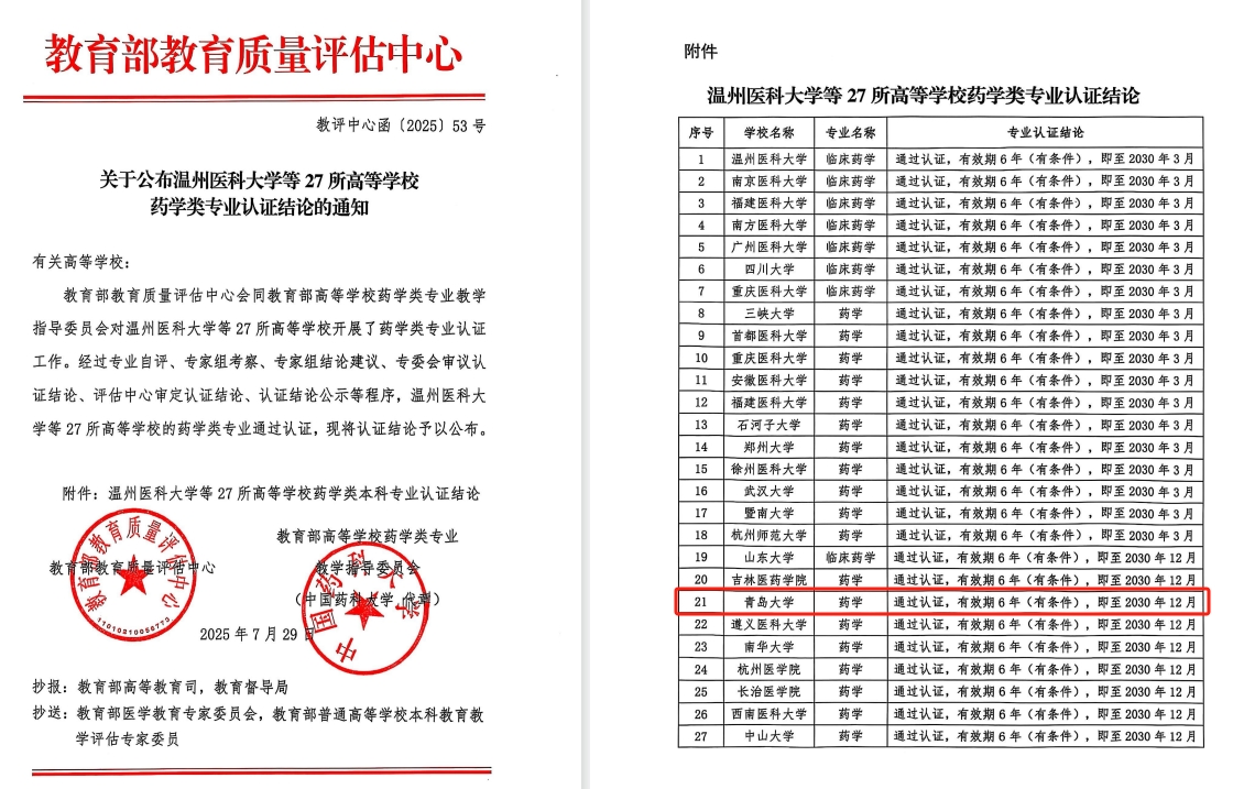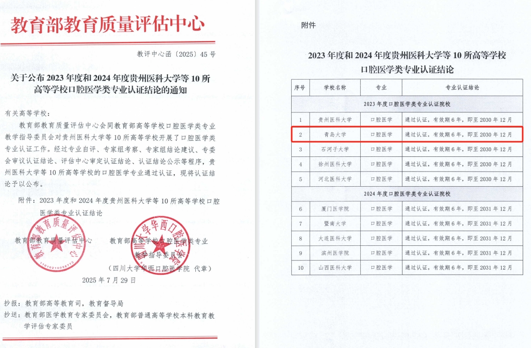 此前,伟德官网临床医学、护理学专业已相继通过教育部专业认证。随着口腔医学、药学专业获得认证,学校在医学教育领域逐步形成了“标准引领—认证驱动—持续改进”的质量保障良性生态,为bevictor伟德官网医学教育的整体协同发展和内涵提升奠定了坚实基础。未来,学校将继续以专业建设为抓手,持续深化医学教育教学改革,紧密对接区域卫生健康事业发展需求,充分发挥综合性大学多学科交叉融合优势,大力推进医学与工科、理科、信息科学、人文社科等领域的深度融合,着力构建“医学+”复合型人才培养新范式,不断提升医学教育质量与创新能力,为健康山东和健康中国建设贡献更具特色、更高水平的青大医学力量。