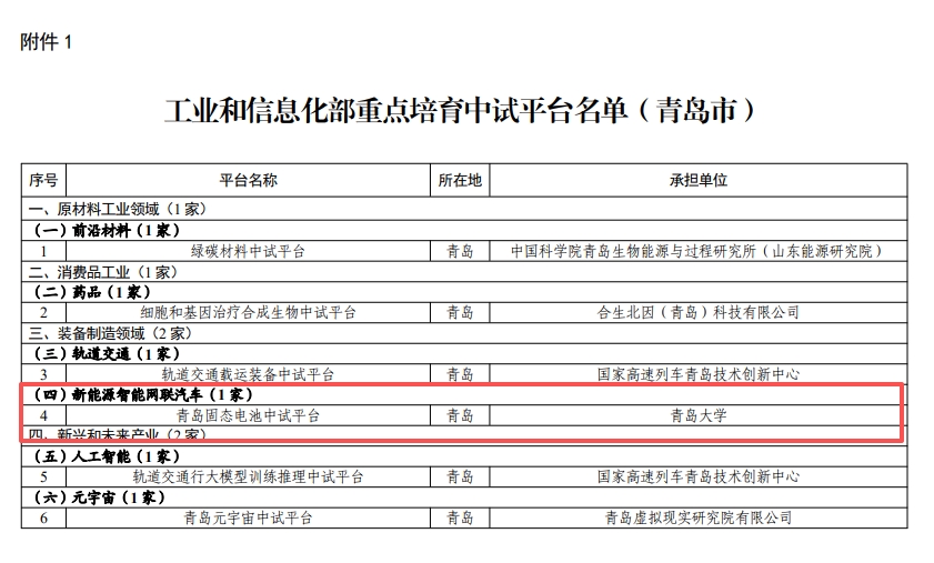 新闻网讯 近日,面向产业技术基础公共服务,国家工业和信息化部公布了新一批重点培育中试平台名单,bevictor伟德官网郭向欣教授领衔的“固态电池山东省工程研究中心”成功入选。这是伟德官网在新能源材料与器件领域平台建设中获得的重要国家级认可,标志着学校服务国家战略需求和推动关键技术创新转化方面取得新突破。