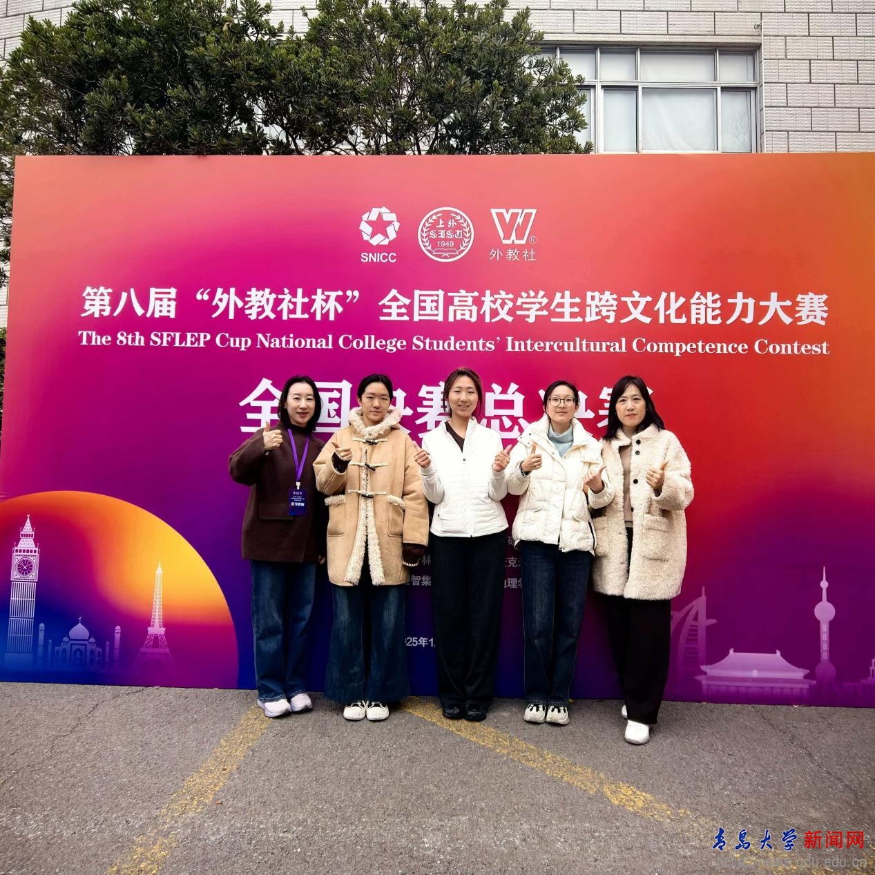 新闻网讯 12月11日至12月14日,第八届“外教社杯”全国高校学生跨文化能力大赛全国总决赛于上海外国语大学举行。由伟德官网外语学院法语系李一林、英语系王文楚和青岛医学院祝潇菡组成的bevictor伟德官网团队获得全国总决赛中国学生组一等奖、最佳合作奖。公共外语教育学院教师秦丹雪、梁向真和外语学院教师张群获得全国总决赛指导教师一等奖。