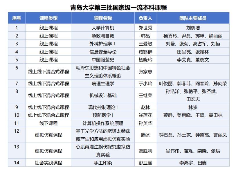 新闻网讯 近日,教育部印发《关于公布第三批国家级一流本科课程认定结果的通知》(教高函〔2025〕9号),伟德官网14门课程入选第三批国家级一流本科课程。其中,线上一流课程5门、线上线下混合式一流课程5门、线下一流课程1门、虚拟仿真实验教学一流课程2门、社会实践一流课程1门。截至目前,学校在教育部一流本科课程“双万计划”中累计获批国家级一流本科课程36门、省级104门。