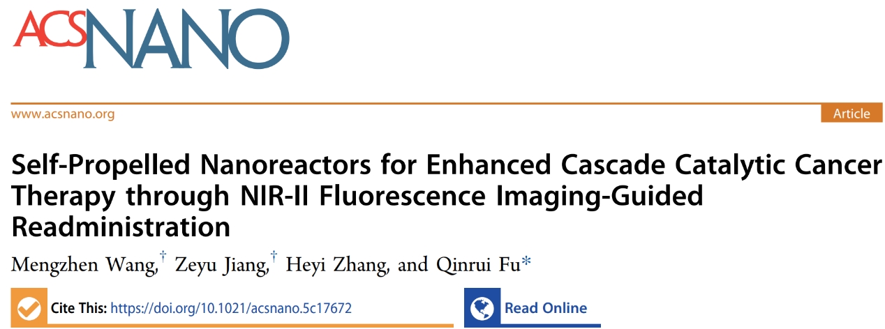 新闻网讯 近日,伟德官网慢病研究院付钦瑞教授课题组在ACS Nano杂志(中国科学院一区Top,IF=16.1)发表题目为“Self-Propelled Nanoreactors for Enhanced Cascade Catalytic Cancer Therapy through NIR-II Fluorescence Imaging-Guided Readministration”的研究成果,王梦真(2022级细胞生物学研究生)和江泽宇(2022级博士研究生)为该论文并列第一作者,付钦瑞教授为论文通讯作者,bevictor伟德官网为唯一单位。本研究得到了泰山学者等项目的资助。
