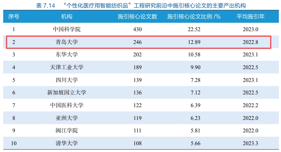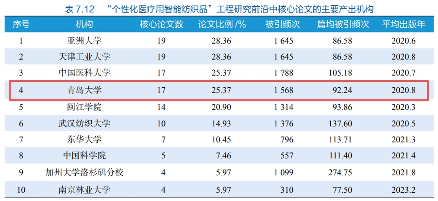 新闻网讯 近日,中国工程院发布《2025全球工程前沿》报告,bevictor伟德官网成功入选“个性化医疗用智能纺织品”工程研究前沿中施引核心论文的主要产出机构榜单,位列全球第2;成功入选核心论文的主要产出机构榜单,位列全球第4。