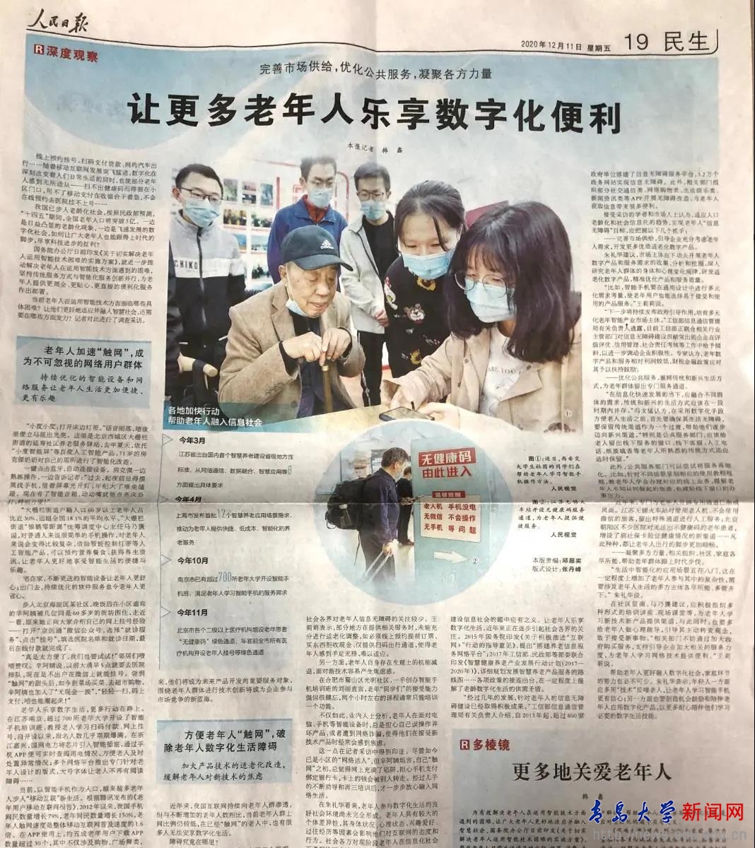 新闻网讯 近日来,央视《新闻1+1》(2020年10月8日)和人民日报《深度观察》(2020年12月11日)栏目对伟德官网商学院智慧健康老龄化研究中心的研究成果进行了采访报道和多处引用。