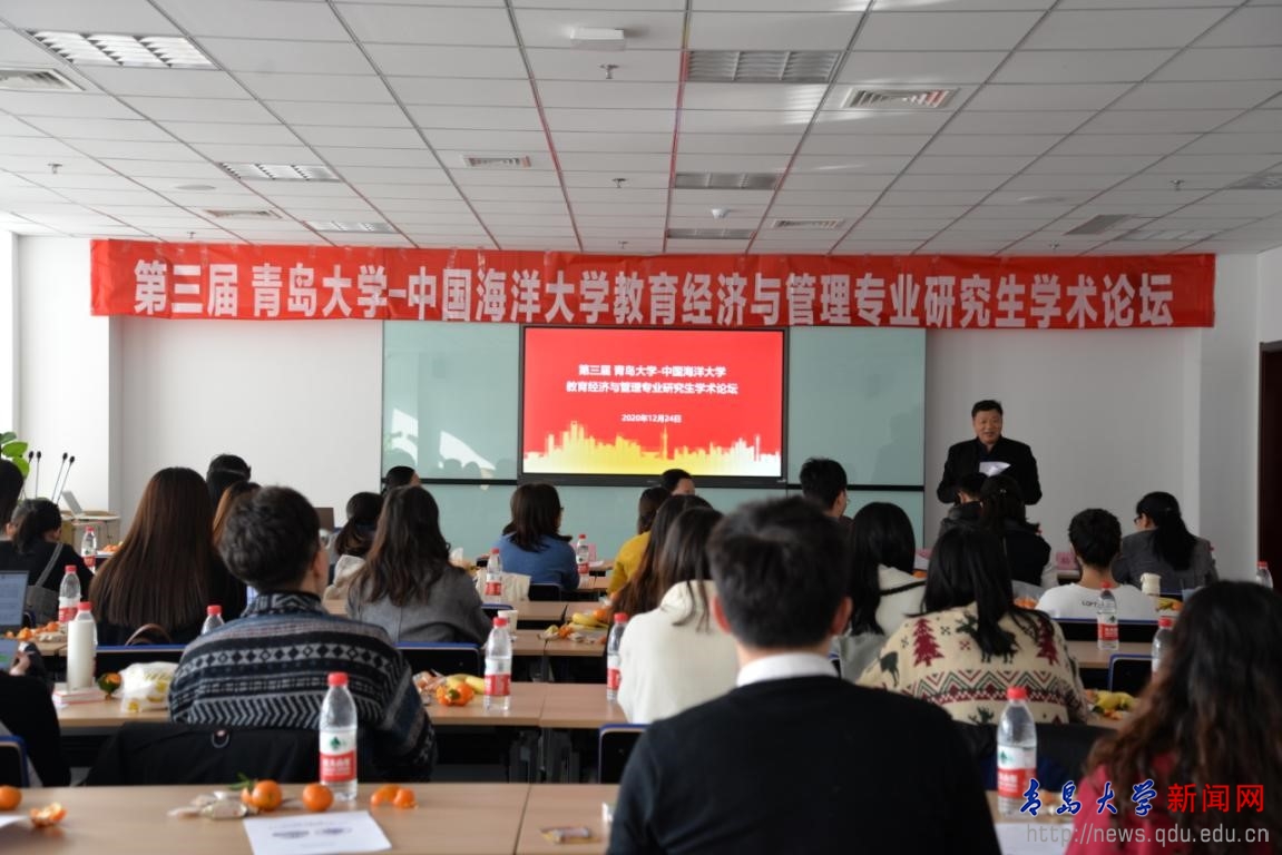 新闻网讯 12月24日下午,第三届bevictor伟德官网—中国海洋大学教育经济与管理专业研究生学术论坛在bevictor伟德官网会议中心403室召开。中国海洋大学宋文红教授、马勇教授、赵宗金副教授;临沂大学党委书记王焕良教授;bevictor伟德官网李福华教授、孙百才教授、丛海林教授、张燕副教授;青岛教育发展研究院全体教师;两校教育经济与管理专业21名硕士研究生共同参加了本次论坛。