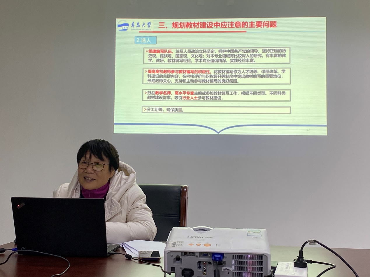 为贯彻落实学习精神,学院组织了规划教材编写培训、名师讲坛学习等系列活动。组织全院教师线上学习于海生教授关于国家级一流课程、团队与教材一体化建设的名师讲坛,全面系统地了解一流专业、一流课程、一流团队的内在联系,明确了以一流教材为突破口的建设路径。邀请“十一五”国家级规划教材作者徐淑华教授做教材编写培训讲座。