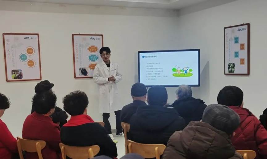 同学们还结合自己所学的专业知识,针对目前老年人群体中常见的糖尿病病症进行了宣讲。志愿者用自己制作的PPT介绍了糖尿病的预防方法和应对低血糖的注意事项,并与老人们进行了互动交流,在一问一答中增进了大家对糖尿病知识的了解。