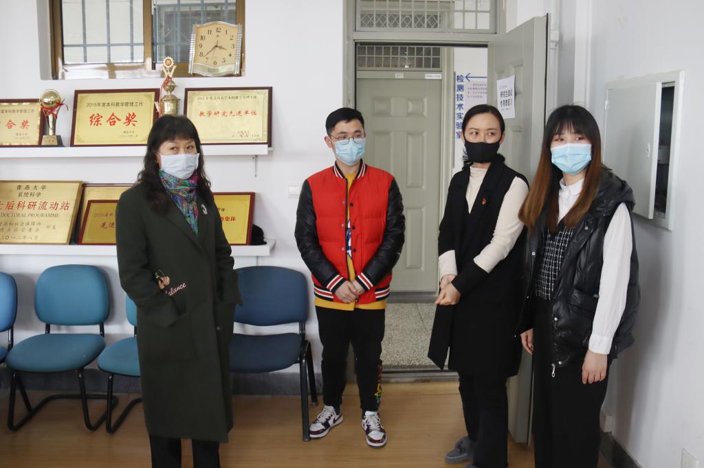 随后,刘彩云一行走访了值班人员办公室和辅导员办公室。亲切的询问了值班人员日常工作生活情况,充分肯定了学院在疫情防控期间所做的工作以及大家付出的努力;叮嘱学工人员要注意身体,劳逸结合,做好个人防护,确保身体健康;希望大家继续团结一致,扎实做好疫情防控、学生教育管理各项工作,争取疫情防控的早日胜利。
