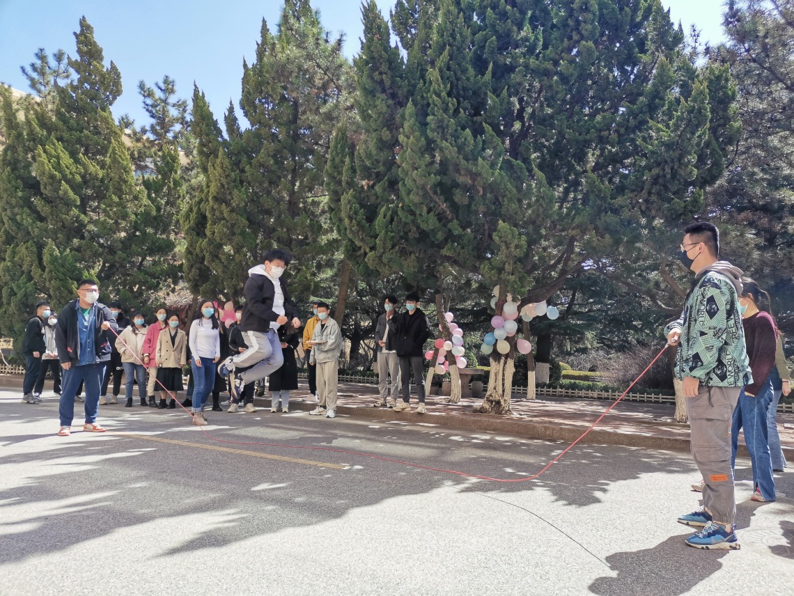 新闻网讯 日前,计算机科学技术学院在博知楼前举行“同心战‘疫’,激扬青春”师生趣味运动会,部分驻校教职工和研究生参加了跳大绳、三人四足、互踩气球等项目。师生们不惧疫情侵袭、不负满园春色,奋力比拼,欢声笑语不断,给疫情下的校园增添了青春的活力。