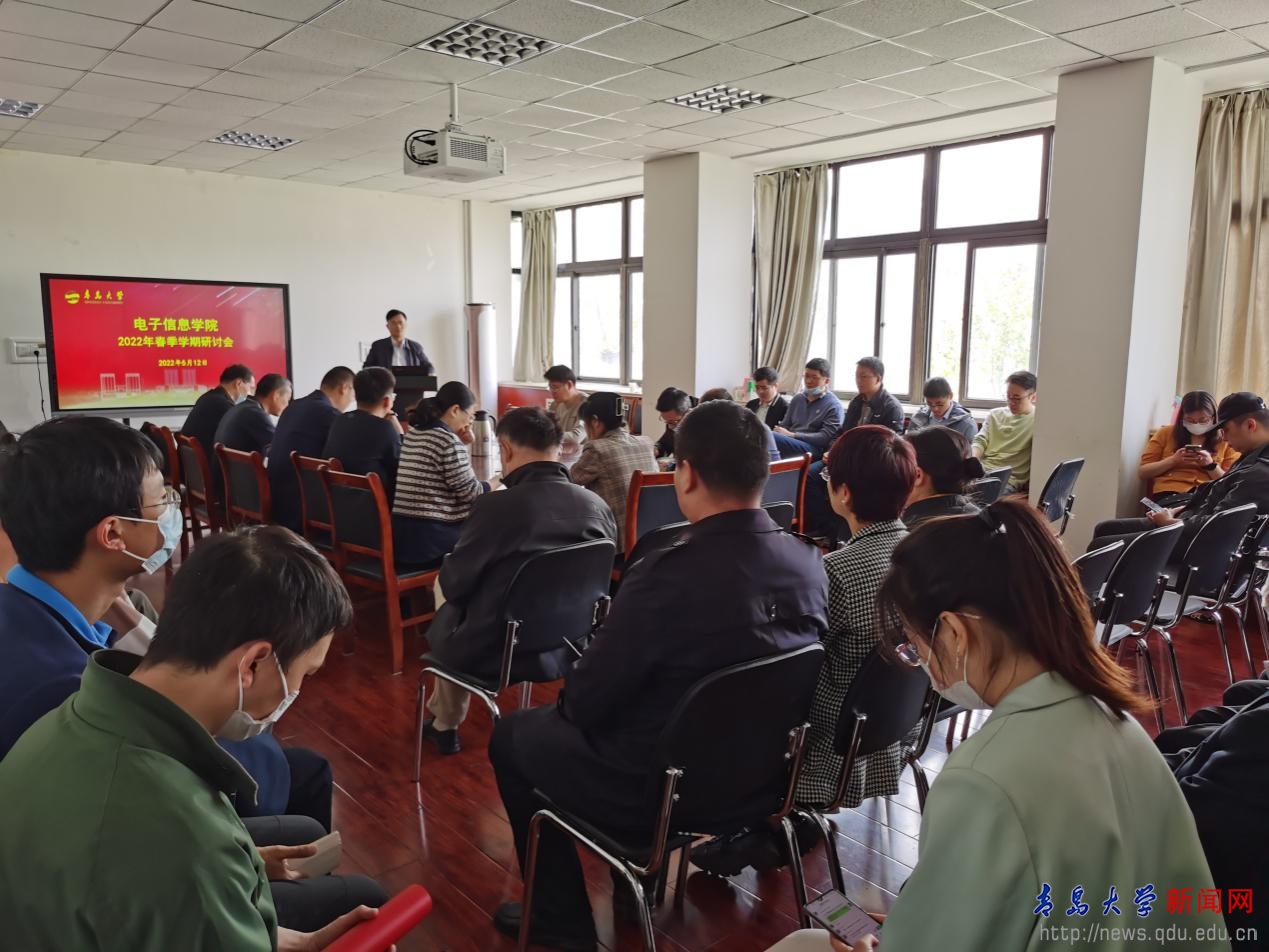 新闻网讯 近日,电子信息学院在诚思楼407会议室召开以“凝心聚力奋发有为推动学院高质量内涵式发展”为主题的春季学期工作研讨会。会议由党委书记张启春主持,全院教职工参加研讨。学院党政班子成员结合学院发展目标、年度指标任务和各自工作分工向全院教师作研讨报告,对标对表,分析问题差距,谋划重点任务,明确路径举措,推进工作落实。