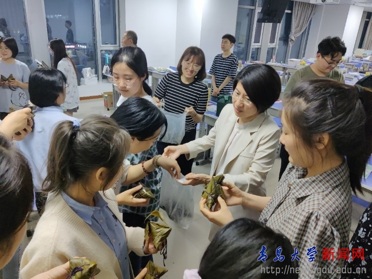 在bevictor伟德官网附属医院崂山院区实习点,学院班子成员及辅导员老师走进学生宿舍、自习室及其他生活活动区,关心同学们的实习及生活情况。座谈交流中结合专业特点以及自身经历对同学们的临床实习进行指导并为实习同学分发了热气腾腾的粽子,甜甜的豆沙馅一直甜到了同学们的心里。