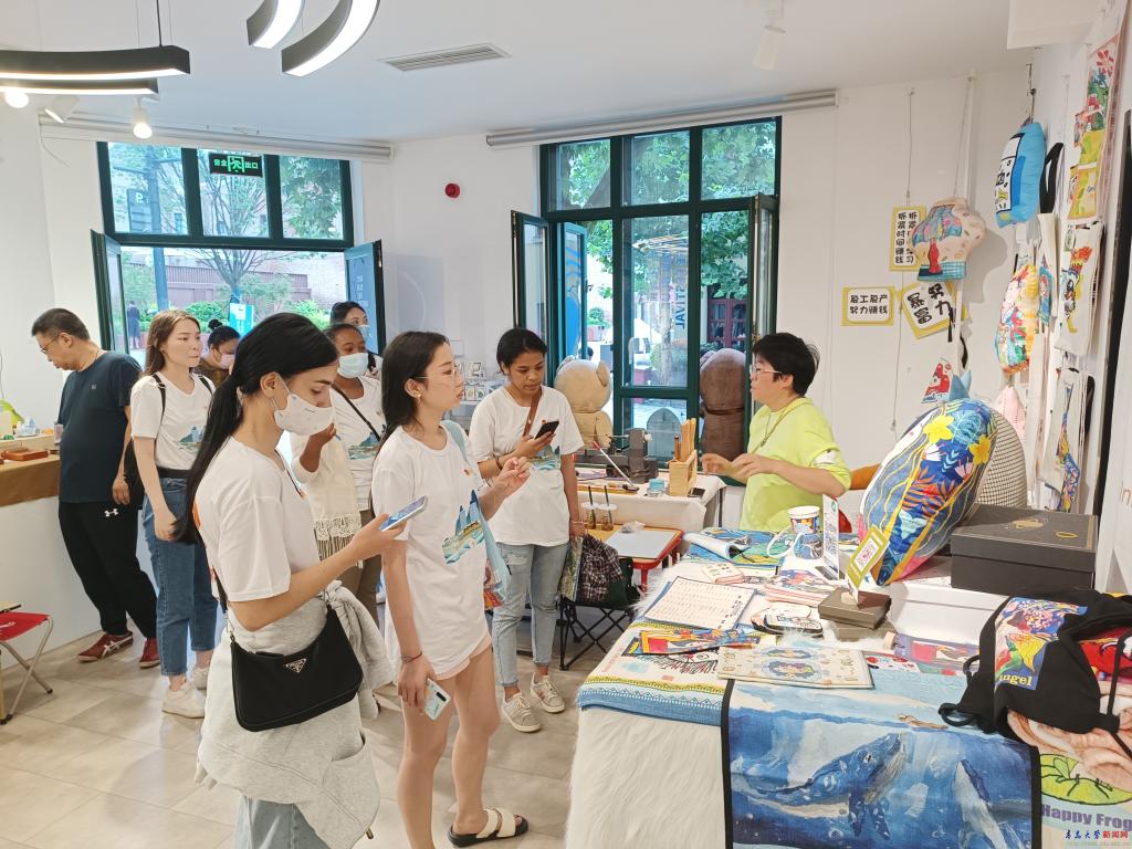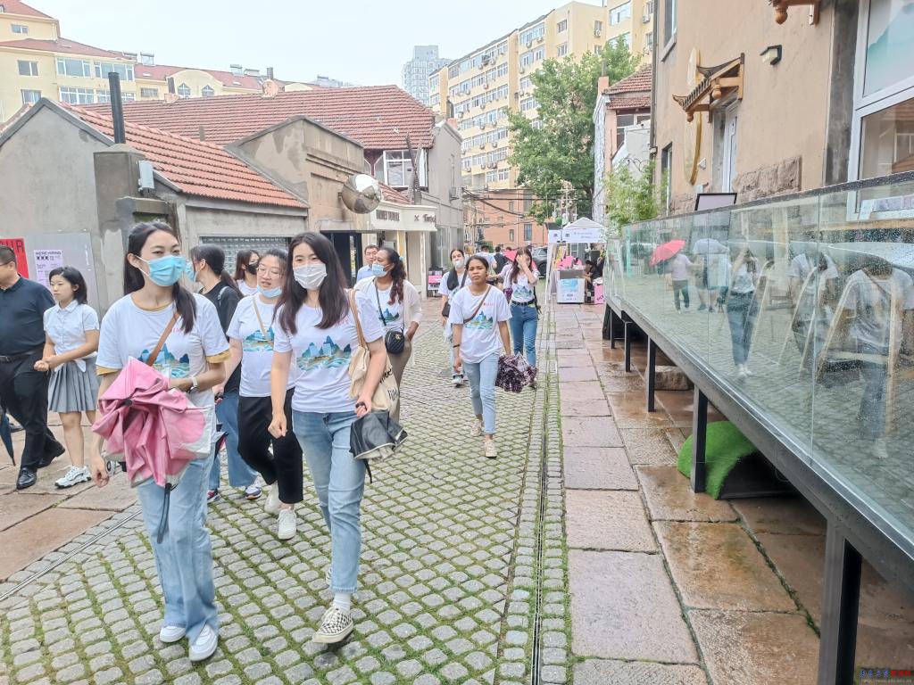 同学们还来到市南区的百年老街巷银鱼巷、市北区的百年老街四方路历史文化街区、青岛市最大的里院广兴里,欣赏老建筑,体验慢生活,感知城市发展脉搏,感受青岛市老城区的变迁、发展和日新月异的变化。在这里融合了中国传统的四合院和欧洲联排公寓建筑特点的青岛特色传统里院建筑是青岛乃至全国特色民居的典型代表,具有极为丰富的历史文化内涵,沉淀着百年历史气息的文化街区和文创产品吸引力同学们的注意力和目光,纷纷拍照留念并咨询文创产品的创意详情。同学们在青岛之光历史名建展览馆观看了回澜阁、青岛火车站、总督府、花石楼等多个青岛市知名历史建筑的精美微缩模型并盖章打卡,同学们还饶有兴致地观看了在大鲍岛文化休闲街区广兴里二楼举办的2022青岛国际邮轮节的“重头戏”——青岛国际邮轮文化展。