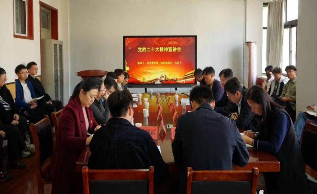 徐龙飞在宣讲报告中表示,党的二十大在我们党和国家历史上具有极其重大的里程碑意义,要深刻领会党的二十大精神的丰富内涵。徐龙飞分享了校党委书记胡金焱到党委组织部党支部宣讲时的指导意见,一是要学“总”,全面系统学习把握党的二十大精神,原原本本学习报告全文,深刻领会党的二十大精神的精髓要义,做到学懂弄通;二是抓“分”,结合工作实际往实里学,融入个人体会和感受,找准结合点和切入点,做到知行合一,将学习成效转换为工作实效。徐龙飞分享了自己的学习体会,结合组工工作和基层党建,提出要进一步加强青年干部培养,为学校学院事业发展储备人才;要不断加强基层党组织建设,培育标杆学院和样板支部;要进一步强化党员队伍建设,发挥先锋模范作用,注重从青年学生和青年教师中发展党员。