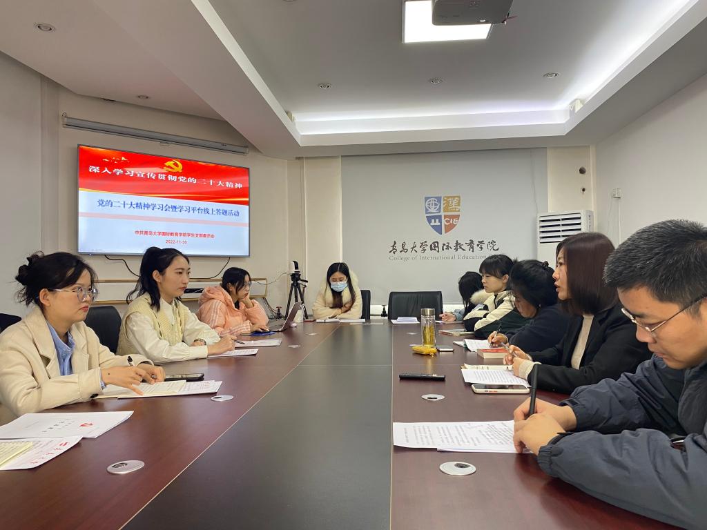国际教育学院师生将继续深入组织开展党的二十大精神专题学习,通过各类学习活动实现师生全覆盖,并在学习中提高政治站位,凝聚思想共识,把所思所学所想贯彻落实到具体工作中,切实将学习成果转化为推动学院高质量发展的实际行动,为落实立德树人根本任务做出新的贡献。