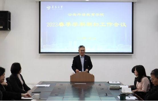 新闻网讯 2月9日,公共外语教育学院在睿思楼202会议室召开2023春季学期期初工作会议,开展集体学习、传达学校会议精神、部署新学期工作。学院领导、教研室主任、党支部书记及教师代表现场参会。