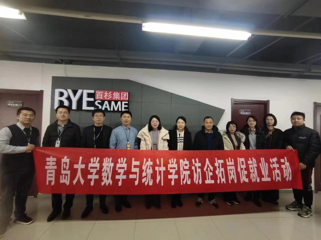 新闻网讯 为深入学习贯彻党的二十大精神,实施就业优先战略,落实学校促就业“暖心行动”工作要求,不断深化校企合作、拓展毕业生就业渠道,2月16日,数学与统计学院党委书记刘琪一行7人赴青岛百杉软件科技有限公司(以下简称百杉科技)进行访企拓岗促就业活动。