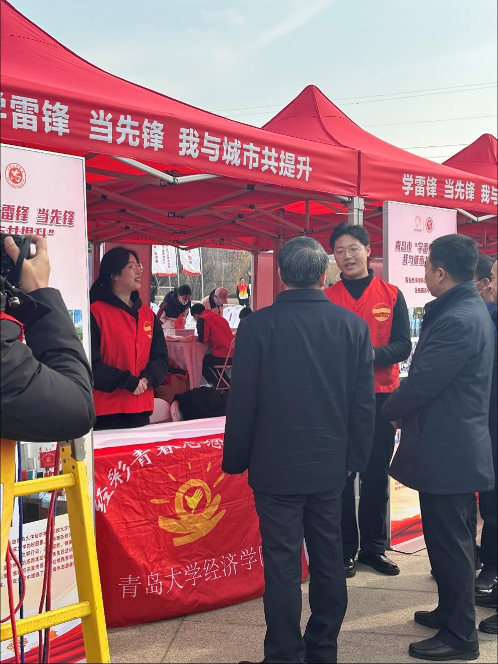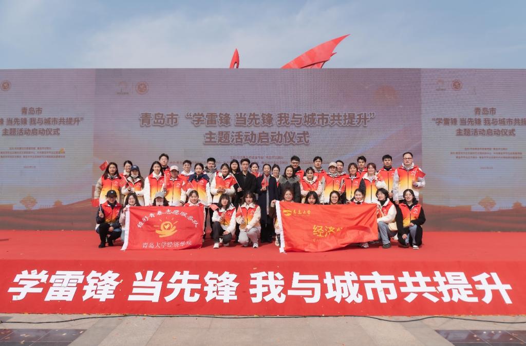新闻网讯 3月3日上午,经济学院经彩青春服务队由学院党委副书记于文洁以及学院辅导员带队,赴青岛市志愿者广场参与青岛市“学雷锋,当先锋,我与城市共提升”主题活动启动仪式。32名队员参与会务志愿服务以及志愿大集风采展示。