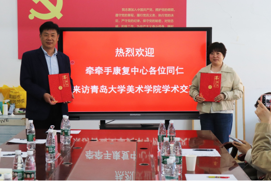 会上,美术学院人机交互与未来教育研究中心与青岛市牵牵手康复中心签署了未来合作协议,为未来针对孤独症儿童智能交互产品的合作开发奠定了基础。