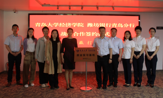 新闻网讯 5月19日,经济学院与潍坊银行青岛分行战略合作签约仪式在潍坊银行青岛分行举行。经济学院党委副书记于文洁,青岛分行党委书记、行长嵇海涛以及相关管理部室负责人、学院学工人员出席签约仪式。