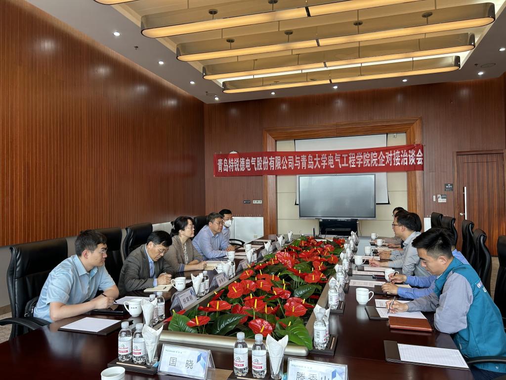 新闻网讯 为推进学院主题教育活动走深走实,不断深化学院人才培养与社会产业发展的衔接融通,切实破解学生就业难题,5月18日,电气工程学院党委书记王春一行前往青岛特锐德电气股份有限公司进行调研。01级校友、青岛特锐德电气股份有限公司集团副总裁李广智以及集团相关部门负责人、校友代表出席座谈会。