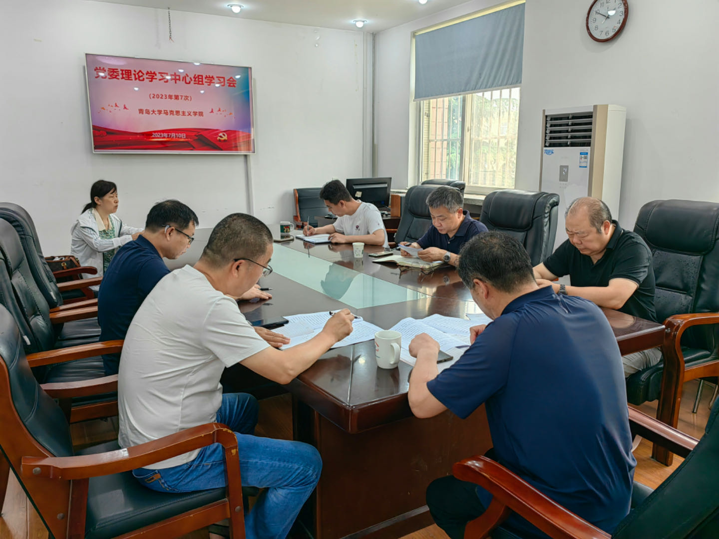 新闻网讯 7月10日上午,马克思主义学院党委理论学习中心组举行2023年度第七次学习会。校党委副书记肖江南到会巡听督学指导,院党委理论学习中心组全体成员参加了学习。
