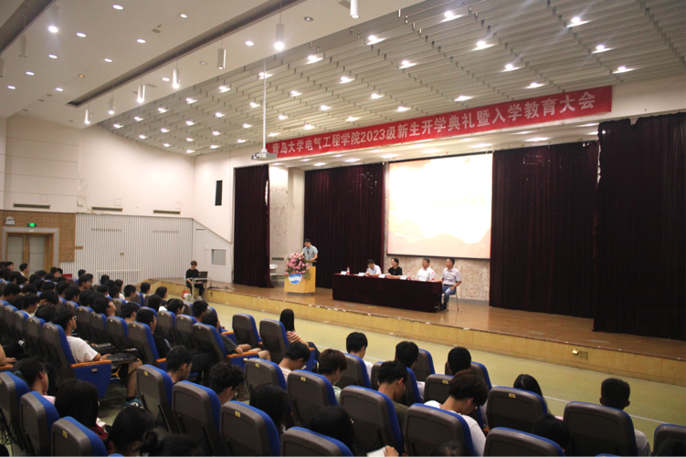 新闻网讯 9月23日,电气工程学院举行2023级本科生开学典礼暨入学教育大会。学生工作处处长、学院党委书记王春,院长张智晟和学院其他党政班子成员、科室主任、各年级辅导员及2023级各班班主任以及2023级全体本科新生参会,院党委副书记薛希洪主持会议。