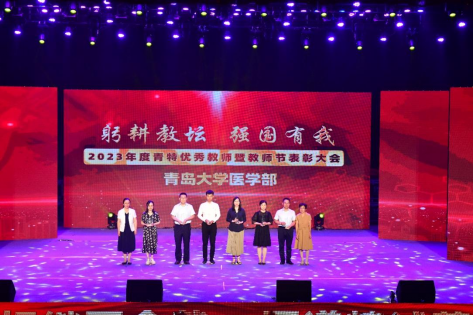新闻网讯 9月14日下午,医学部在青大剧院隆重召开“躬耕教坛 强国有我——2023年度青特优秀教师暨教师节表彰大会”。青岛青特悦海健康产业有限公司副总经理姜皓然,学校人力资源处处长陈韶娟、合作发展处处长张燕、医学部党委书记王新生及退休老教师代表出席会议并为获奖者颁奖。受表彰的先进集体和个人代表,各学院、附属医院主要负责人,退休教师代表、新入职教师以及师生代表700余人参加大会。