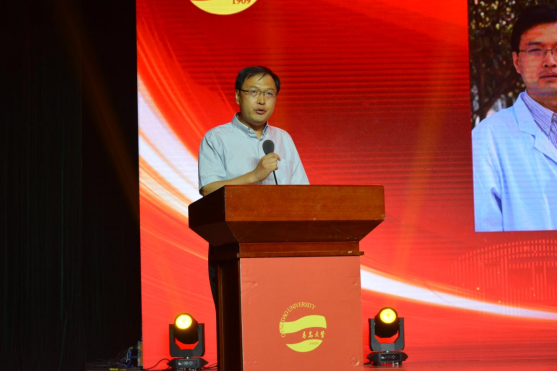 基础医学院人体形态学实验室主任、遗体捐献接受中心主任、全国优秀教师沈若武教授作为教师代表上台发言。他首先对2023级新生的到来表示欢迎,并对新生的大学生活存在的问题与疑惑进行了解答,为新生们指引了方向。