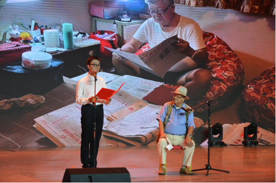 新生代表刘峻玮与青医65级临床专业的外公于建才带来朗诵《圆梦青医承风骨,继往开来筑华章》。