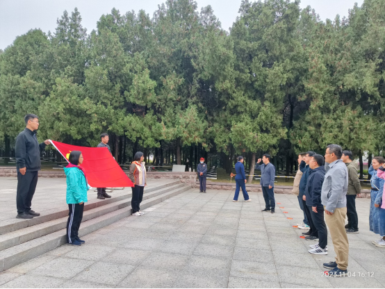 在孟良崮战役纪念馆。大家通过观看历史图片、战争实物、沙盘演示、影像资料等,深入了解孟良崮战役的浴血奋战历程,深刻感受到革命先烈为了实现人民解放奋战前线,不畏牺牲的崇高革命精神,以及沂蒙人民全力支援、不畏艰难的无私奉献精神。在纪念馆后粟裕将军墓前,全体党员教师向粟裕将军和革命英烈敬献花篮,学院党委书记李凌云作为领誓人带领全体党员重温入党誓词,表示要向英雄烈士们学习,传承和发扬红色精神,坚定理想信念,为党的事业奋斗终身。