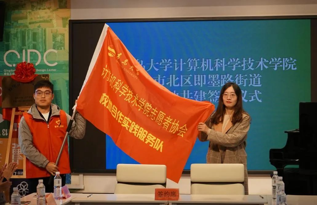 新闻网讯 11月17日,计算机科学技术学院与青岛市市北区即墨路街道在广兴里326会议室举行校地共建签约仪式。学院党委书记潘秋鸿、即墨路街道党工委书记盛建、学院党委副书记周鹏、即墨路街道团工委书记梁玉娇及学校、街道、社区部分工作人员、师生参加了签约仪式,仪式由梁玉娇主持。