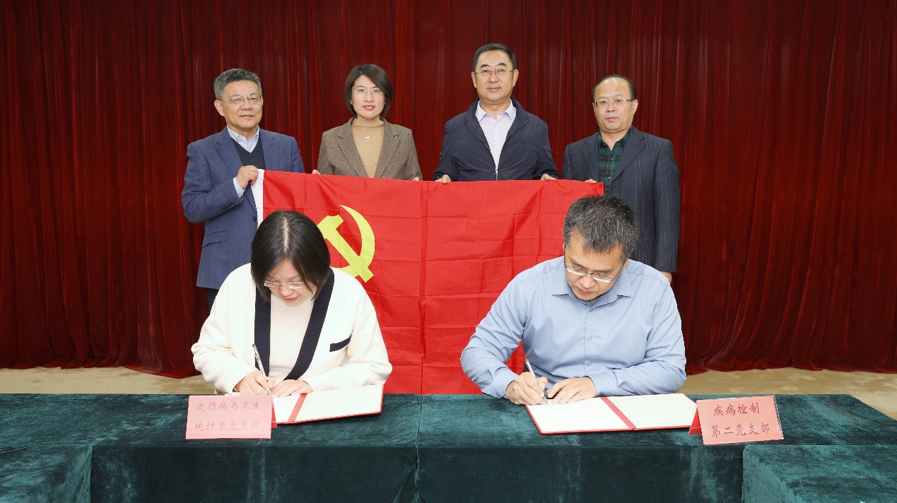 新闻网讯 公共卫生学院流行病与卫生统计学党支部与青岛市疾病预防控制中心疾病控制中心第二党支部共建签约仪式近日在青岛市疾病预防控制中心举行。青岛市卫生健康委党组副书记、市疾病预防控制中心党委书记纪总纲,市疾病预防控制中心纪委书记李善鹏,伟德官网公共卫生学院党委书记贾依娜以及双方党支部成员共同参加签约仪式。