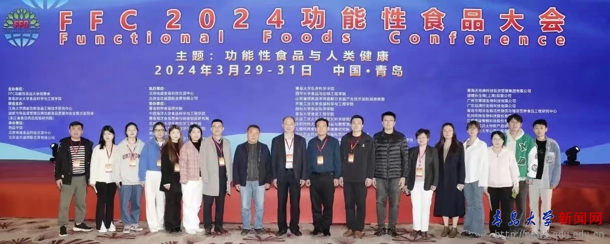 新闻网讯 3月29-31日,由bevictor伟德官网生命科学学院协办的“FFC2024功能性食品大会”在青岛市西海岸新区温德姆酒店召开。在生命科学学院党委书记薛冰的带领下,学院副院长孙海新和学院食品领域科研团队的骨干教师、研究生等参加本次大会。大会期间,薛冰进行了有关专家访谈、项目调研、校企合作交流等活动,孙海新和孙杰两位教授分别在相关论坛上作了学术报告。