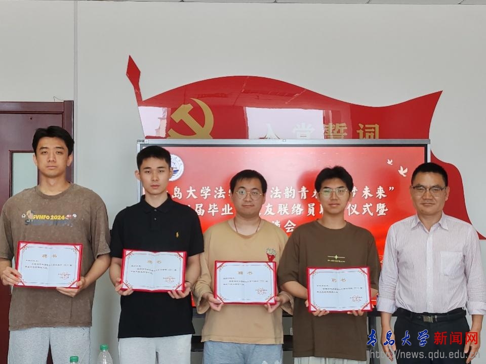 新闻网讯 6月7日,学院举行2024届毕业生代表座谈会暨校友会联络员聘任仪式。法学院党委书记魏强、副书记甄淑华、毕业班辅导员耿秋明以及2024届毕业生代表参加了活动。会议由党委副书记甄淑华主持。