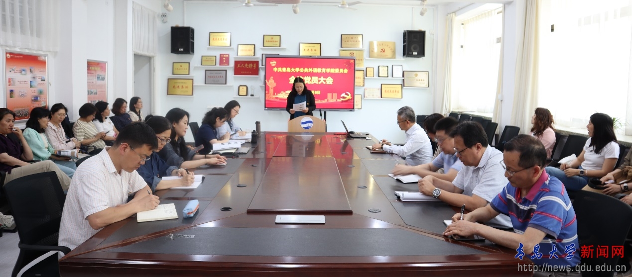 新闻网讯 近日,公共外语教育学院党委在睿思楼202会议室召开全体党员大会,院党委书记刘海荣向全体党员教工宣讲伟德官网第四次党代会精神。