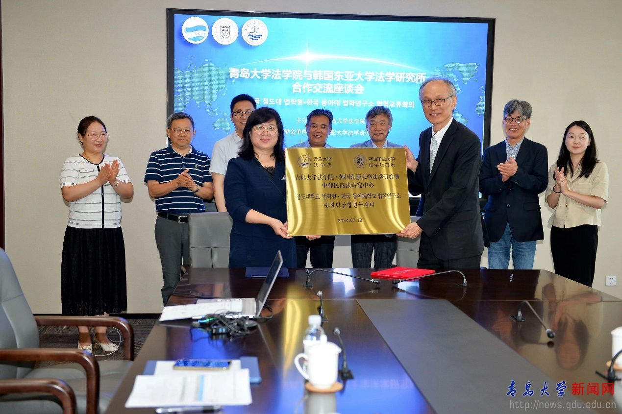 新闻网讯 7月18日上午,法学院与韩国东亚大学法学研究所交流活动在会议中心302室举行。韩国东亚大学法学研究所所长金镛義、研究生院院长宋刚直、法学专门大学院教授赵东济、社会学科教授尹相佑、产业工学科教授金俊宇、釜山大学知识产权融合人力培养事业团教授黄善煐,法学院党委书记李建新、院长蔡颖雯等专家和相关部门负责人出席本次活动,法学院副院长马卫东主持交流活动。