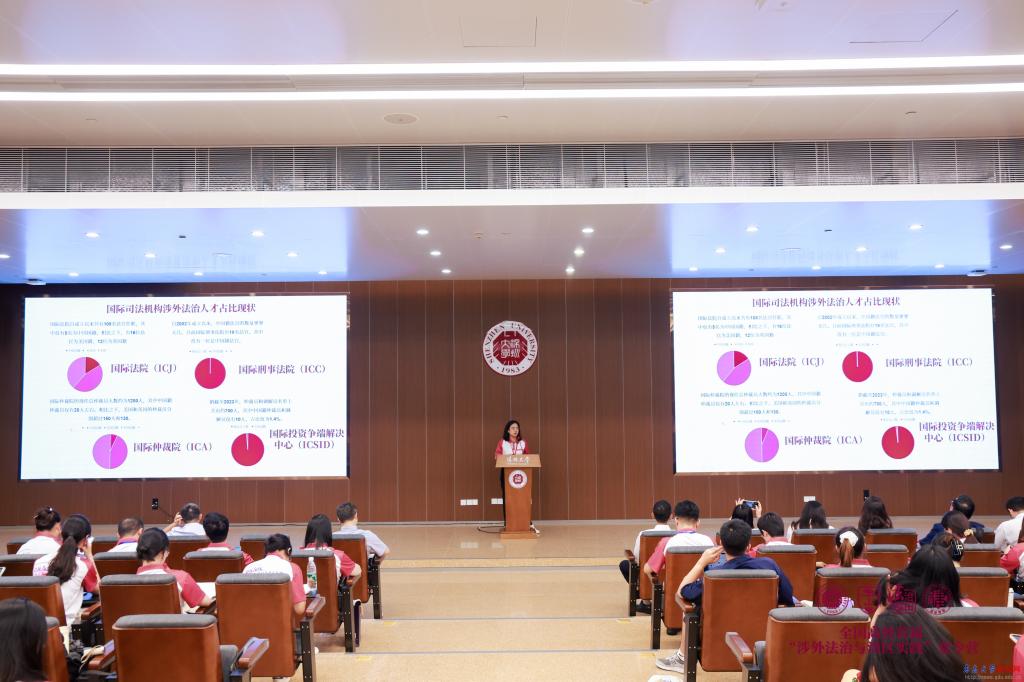 在闭营仪式上,营员们化身研究学者,围绕8个涉外法治学术议题上台汇报。他们结合6天行程的所见、所闻、所思、所想,从人才培养、规则衔接、实务操作、市场需求,交流彼此的认知和视野。梁玉洁同学作为代表上台就涉外法治人才培养途径发表主题发言,取得了在场专家和老师同学的一致认可与好评,展现了bevictor伟德官网法学院的风采。