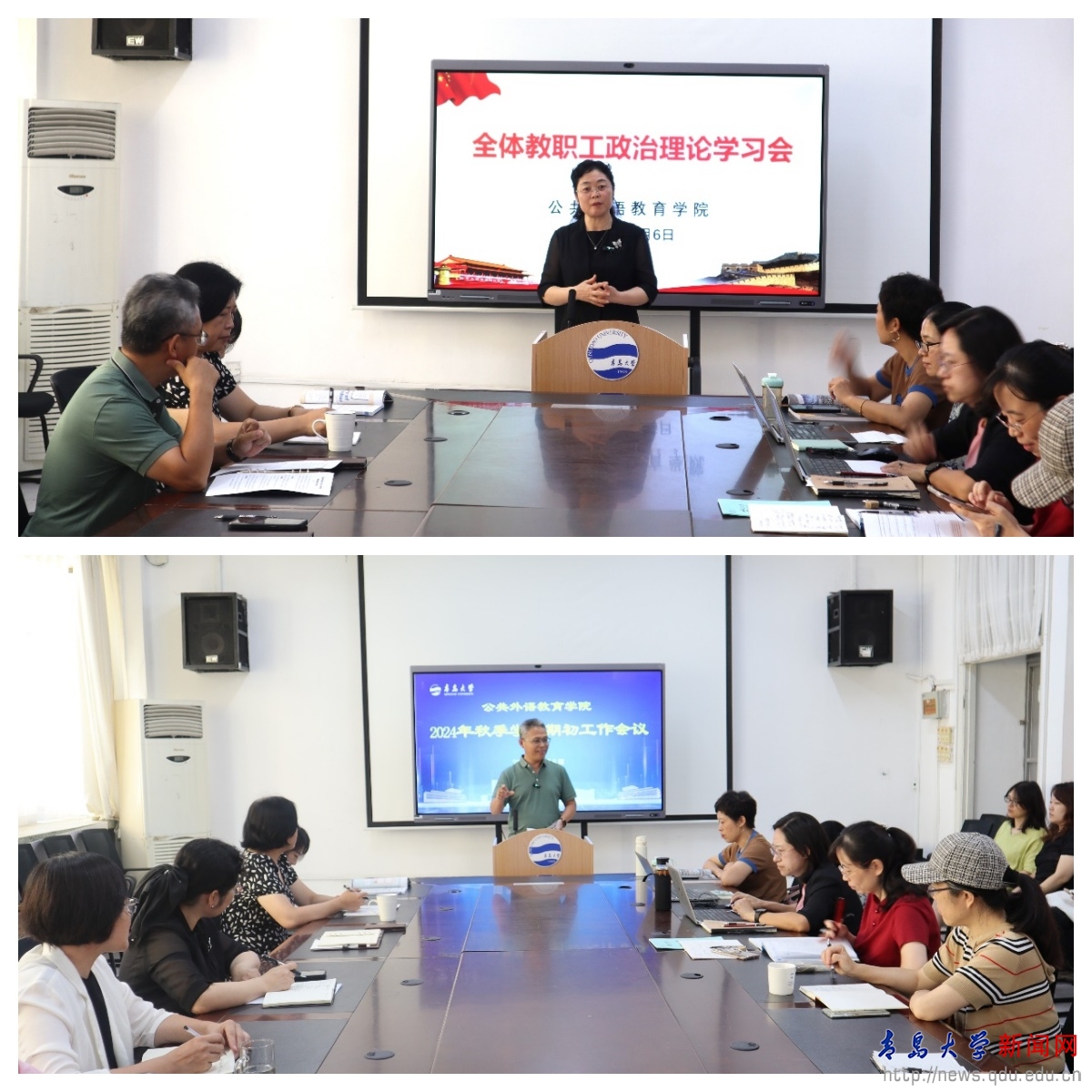 新闻网讯 9月6日上午,公共外语教育学院在睿思楼202会议室召开2024秋季学期期初工作会议暨教职工政治理论学习会,学院领导班子成员、各教研室主任及教师代表现场参会,会议由院长国林祥主持。