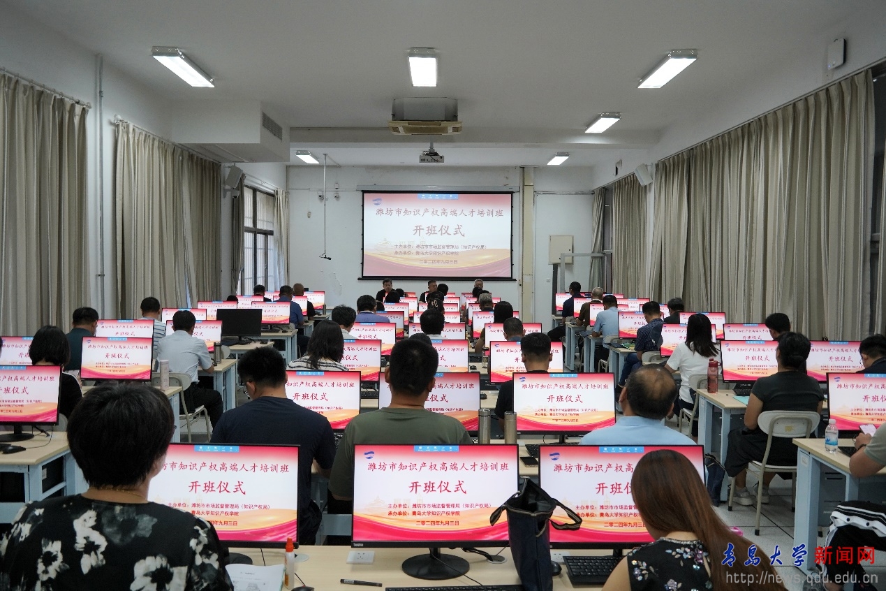 新闻网讯 9月2日—6日,由潍坊市市场监督管理局(知识产权局)主办,伟德官网知识产权学院承办的潍坊市知识产权高端人才培训班在伟德官网开班。潍坊市市场监督管理局三级调研员陈建军、伟德官网知识产权学院院长于正河、潍坊市各县(市、区)政府知识产权工作人员及企业相关从业人员共54人参加知识产权专题培训班开班仪式,潍坊市市场监督管理局知识产权运用促进科科长刘振兴主持。
