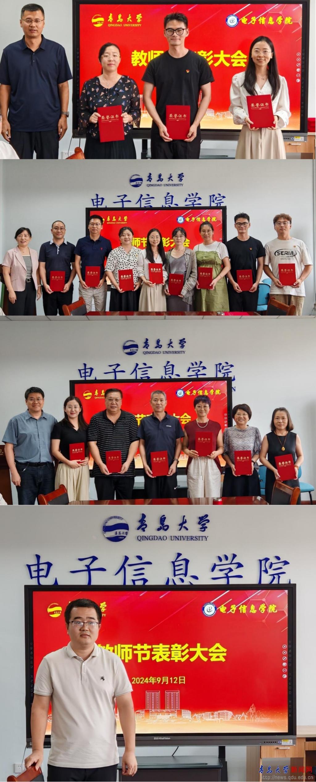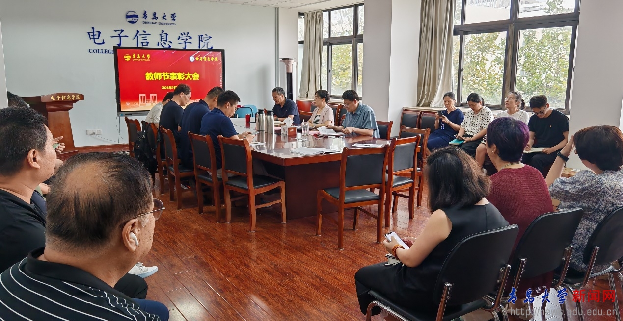 新闻网讯 近日,学院在407会议室举行2024年教师节表彰大会,隆重表彰了过去一年中在人才培养、科学研究和管理服务等方面表现卓越的教师代表。会议由党委副书记刘孝群主持,全体教职工和学生代表参加。