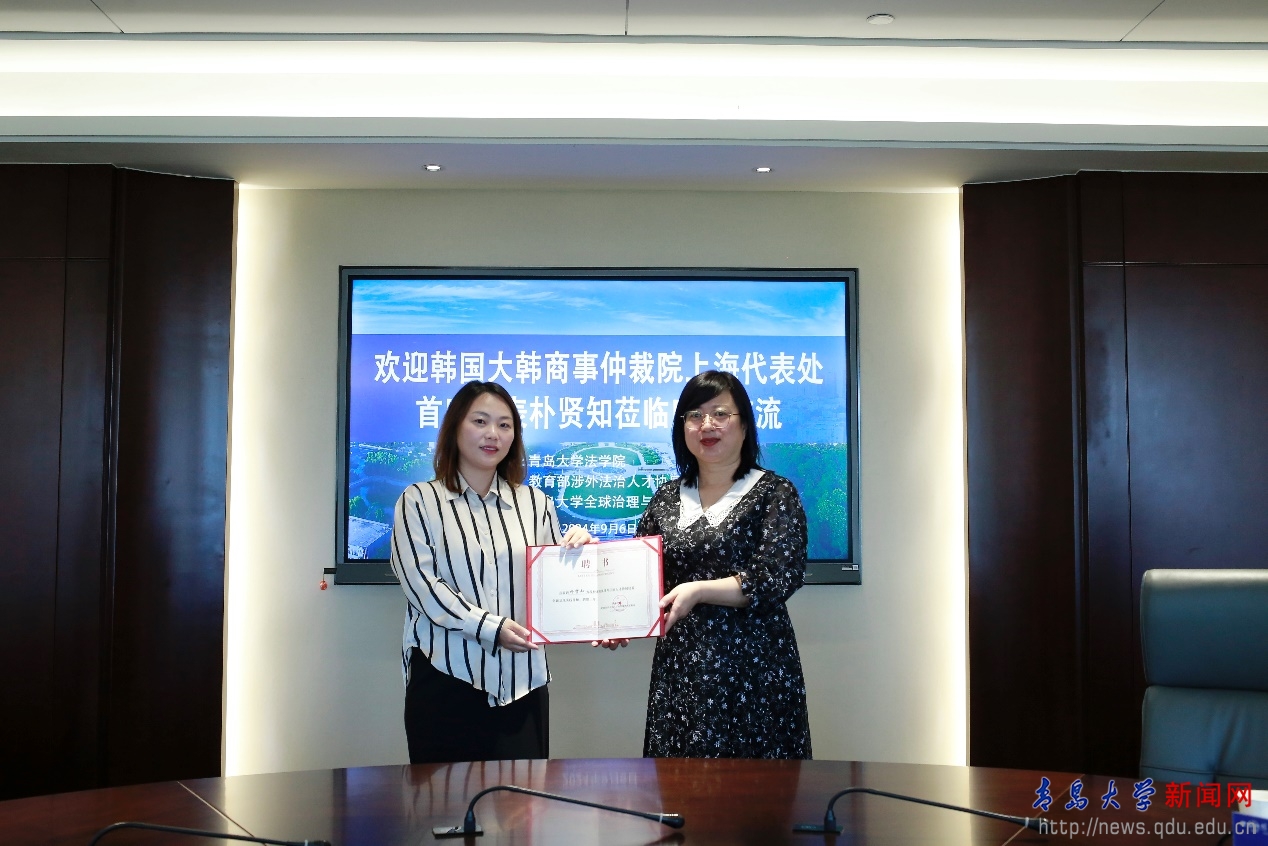 新闻网讯 9月6日上午,大韩商事仲裁院上海代表处首席代表朴贤知女士到伟德官网法学院走访交流,法学院院长蔡颖雯、副院长马卫东、bevictor伟德官网全球治理与国际法研究中心主任郝海青、中国海事仲裁委员会青岛仲裁中心主任曲扬波参加会议,交流会议由郝海青主持。