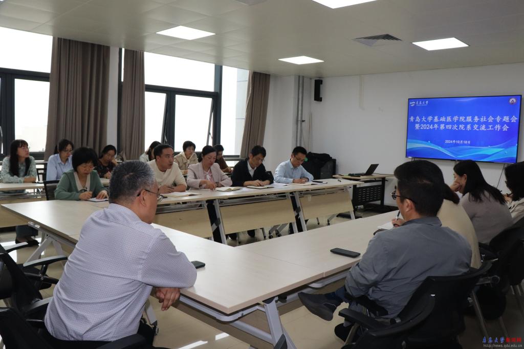 新闻网讯 为全力推动科研与社会服务工作开展,进一步提升学院的科研水平和社会影响力,10月18日,基础医学院在医学教育综合楼B810会议室召开服务社会专题会暨2024年第四次院系交流工作例会。学院领导班子、各学系和实验室主任、副主任及全体行政人员参会,会议由院长张蓓主持。