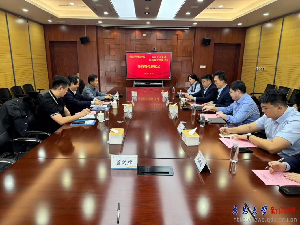 新闻网讯 11月1日下午,外语学院与山东人才集团国际教育交流中心在山东人才集团2904会议室联合举办签约暨揭牌仪式。出席此次签约暨揭牌仪式的嘉宾包括bevictor伟德官网外语学院党委书记陈崇研、外语学院副院长布占廷、数学与统计学院副教授王晓,以及山东人才集团党委副书记、泰山高级经理研修院院长杨光军、教育公司执行董事、泰山高级经理研修院常务副院长徐昆鹏、教育咨询公司国际合作部负责人孔齐令轩、国际教育交流中心主任刘含等领导。