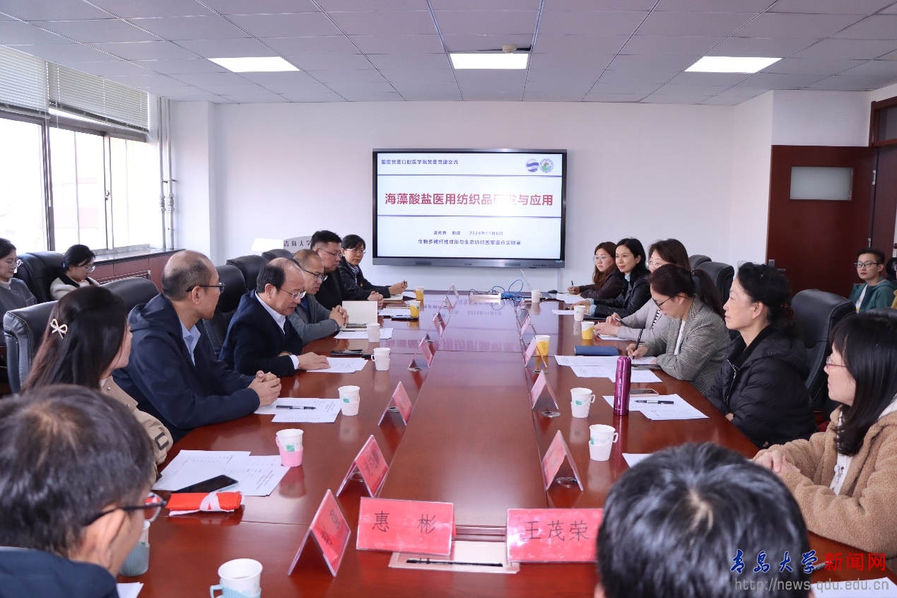 新闻网讯 近日,口腔医学院党委与生物多糖纤维成形与生态纺织国家重点实验室党委在松山校区联合开展“党建引领聚合力 交叉融合促发展”党建活动。生物多糖纤维成形与生态纺织国家重点实验室党委书记张光明、主任夏延致,口腔医学院党委书记王瑶、院长袁昌青,bevictor伟德官网附属医院口腔医疗中心主任邓婧,双方党支部书记、业务骨干、青年教师及研究生代表参加活动。党建活动由王瑶主持。