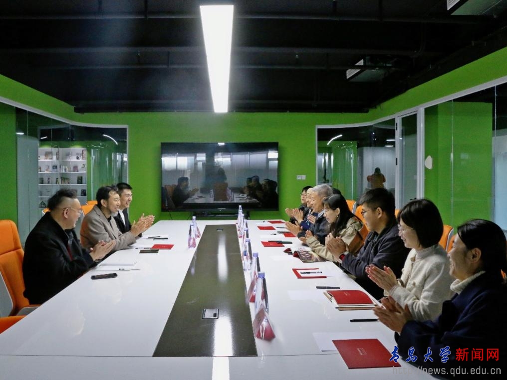 新闻网讯 11月22日上午,文学与新闻传播学院党委书记张辉、副院长(主持工作)张文彦、党委副书记李晓燕、影视系主任李艳英,及部分教研室主任、教师代表、辅导员等一行8人到青岛东唐影视科技有限公司开展访企拓岗及合作研讨。东唐影视科技有限公司董事长、总经理李巨涛先生等相关负责人参与活动。