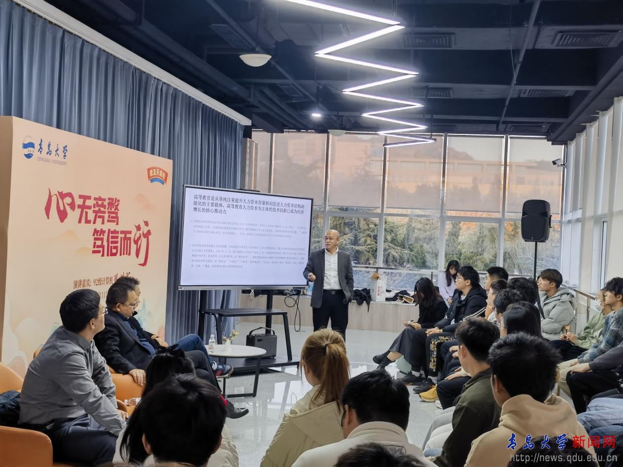 主题演讲结束后,同学们与校友们进行了积极互动。罡金集团董事长刘志刚校友在回答同学们问题时,希望作为工科学生能够充分利用空闲时间多阅读非专业书籍,在阅读中了解人情世故、增长知识见识、拓展认知边界。