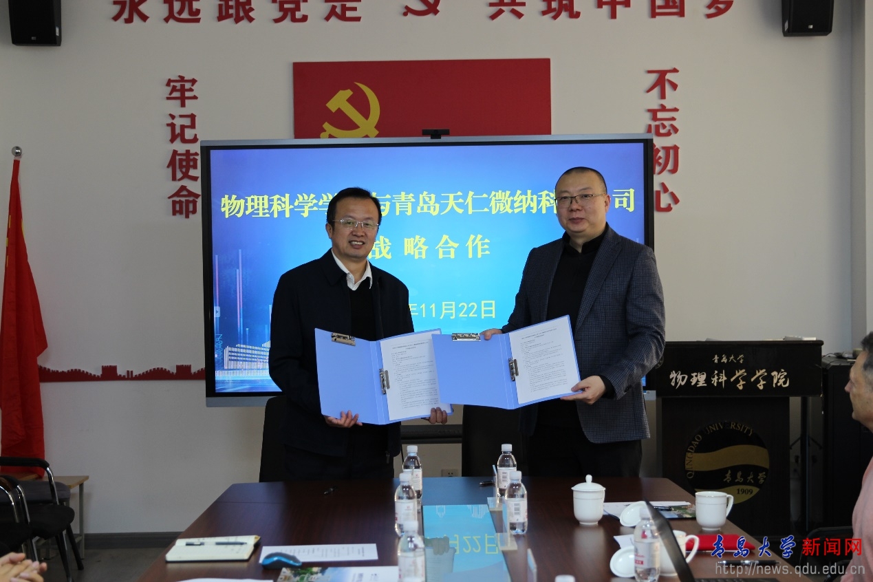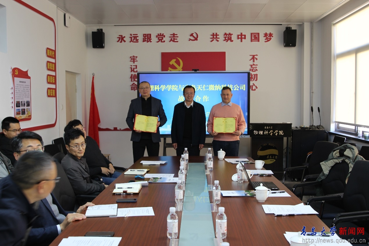 随后,物理科学学院与青岛天仁微纳科技有限公司签署了产学研合作协议,郝伟为冀然博士和Massimo Tormen博士颁发了bevictor伟德官网客座教授聘书。